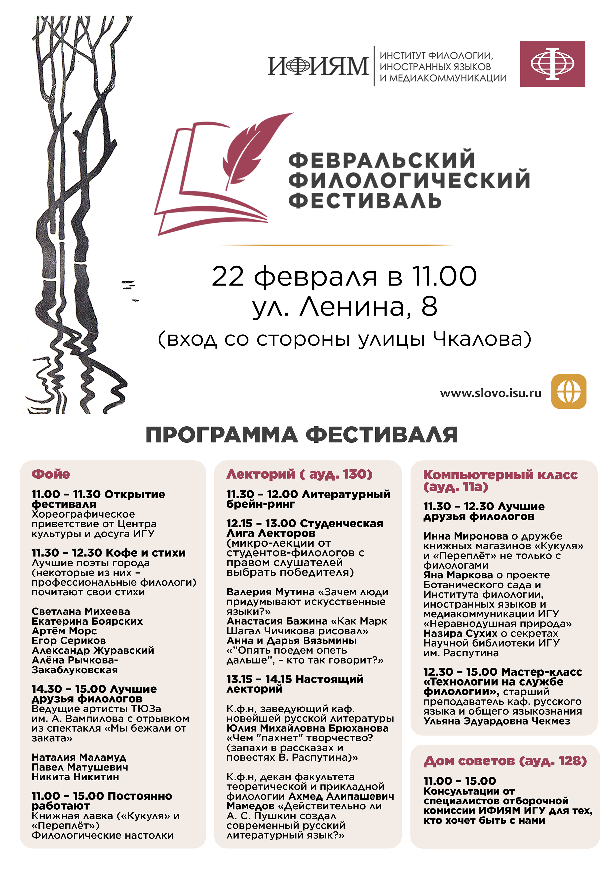 22 февраля 2026 года в Институте иностранных языков и медиакоммуникации ИГУ (ИФИЯМ) пройдёт Февральский филологический фестиваль.