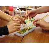 Для студентов 1 и 2 курсов прикосновение получилось во многом буквальным: начав с оригами, встречу продолжили приготовлением японского чая маття и примеркой юката, а затем с помощью старшекурсников учились пользоваться палочками для еды.