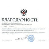 С особым удовлетворением хочу отметить вашу деятельность, направленную на повышение качества высшего образования, усиление этнопедагогических аспектов в обучении, усовершенствование преподавания бурятского языка, литературы, культуры, воспитание педагогических кадров, что позитивно влияет на культурно-духовное и социально-экономическое развитие российского общества…»;